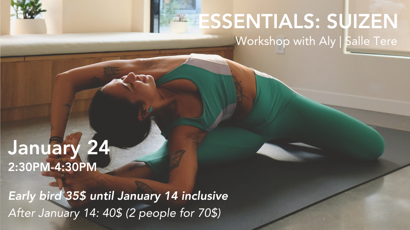 Join Aly for a 2-hour Intro to Navakaraṇa Suizen workshop. This deeply introspective practice focuses on breath, presence, and slow, synchronized movement. Practiced entirely seated, it targets flexibility and mobility through profound, full-body stretches. Suizen is a powerful meditative and restorative experience. Join us to unwind, reset, and reconnect with yourself through sound, prāṇāyāma, prakryiās and mindful stillness.